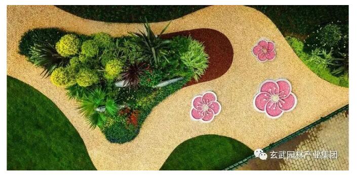 根據公司設計部門精心構思的方案,對綠地空間中心區域設置兩組花境主景,以造型亮晶女貞多頭棒棒糖、川滇白蠟樹棒棒糖營造整個花境亮點,以及水果蘭球、紫葉馬蘭球、亮晶女貞球、北美冬青、朱蕉、新西蘭亞麻、白羽芒、大麻葉澤蘭、金葉石菖蒲、黃金菊等精品綠植及時令花卉設計花境景觀,并鋪撒火山巖點綴,增添回歸自然的野趣。